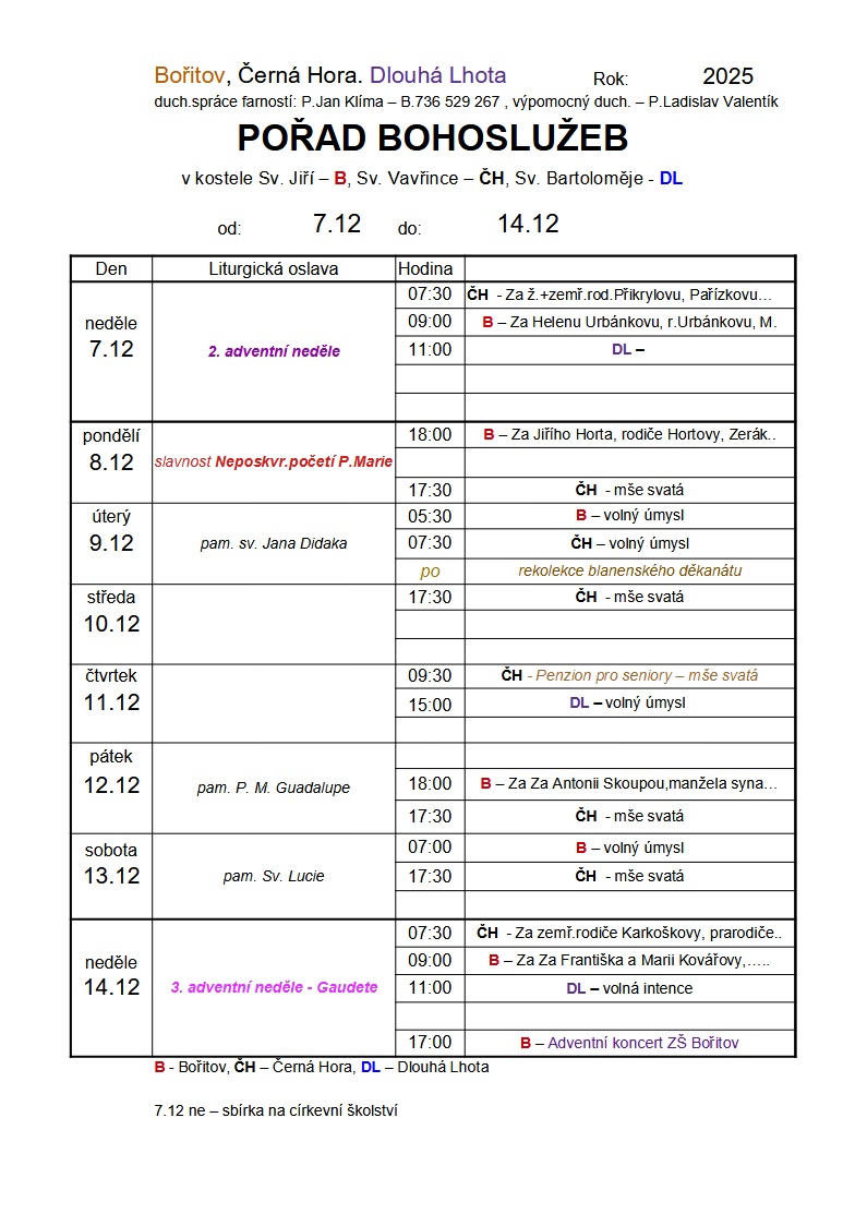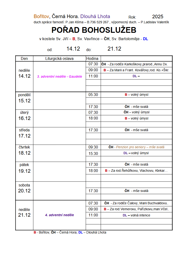 Kompletní přehled bohoslužeb v Černé Hoře je na úvodní stránce.