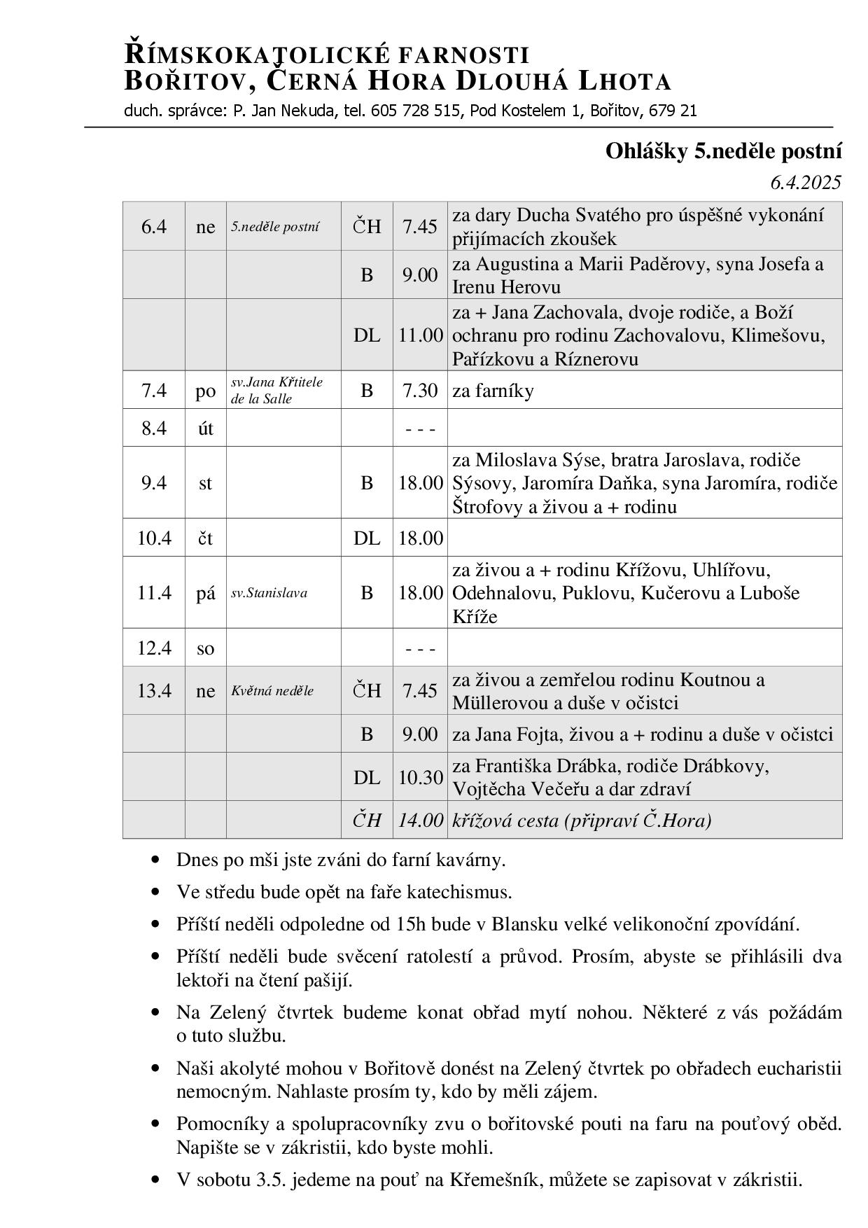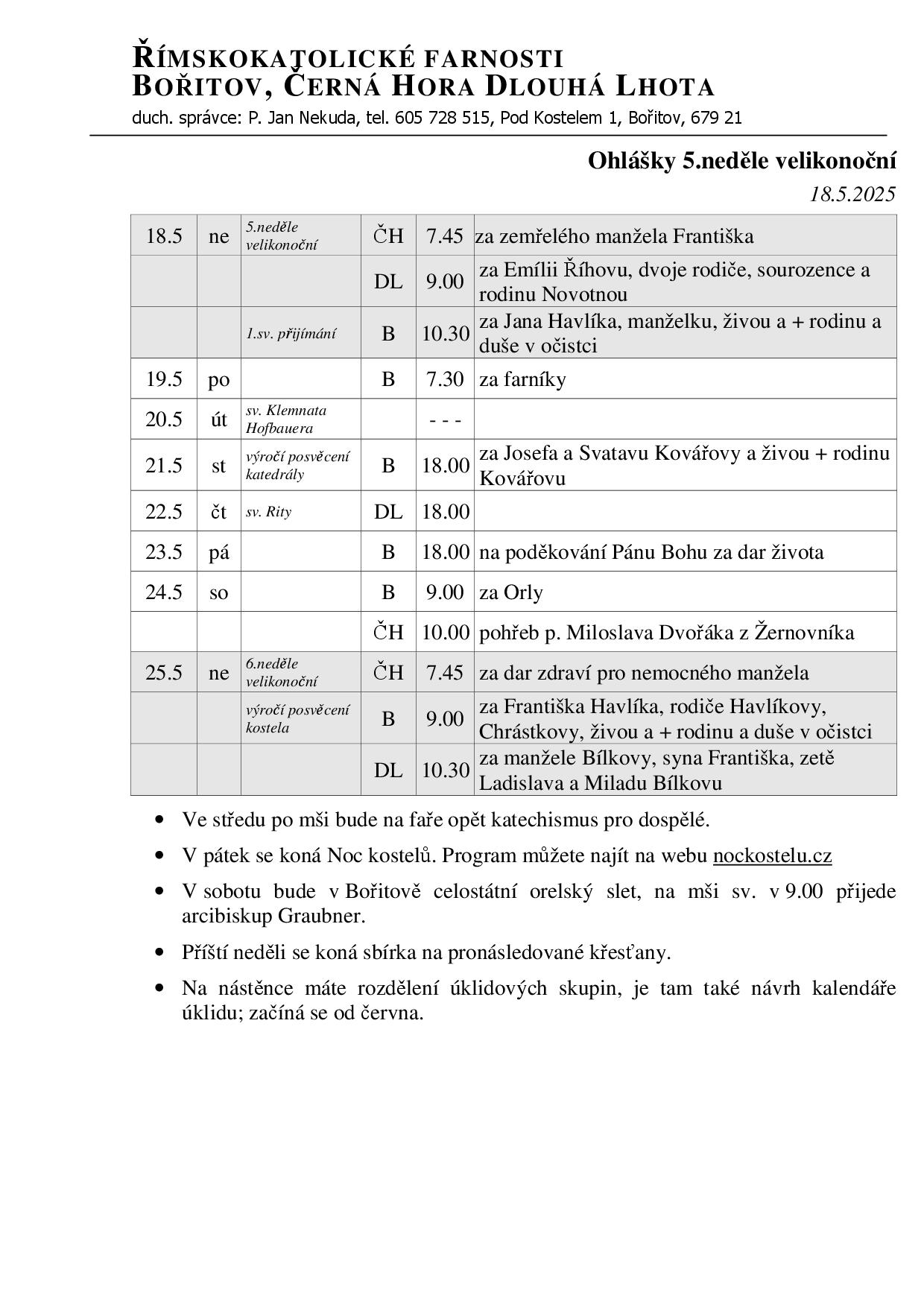 Zde najdete ohlášky pro následující týden pro všechny tři farnosti.